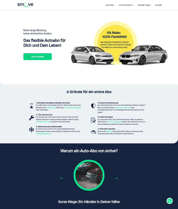 Keine lange Bindung erwünscht? Bei smive kann man bereits nach 6 Monaten das Auto monatlich kündigen oder wechseln. - TÜV, Service & Co